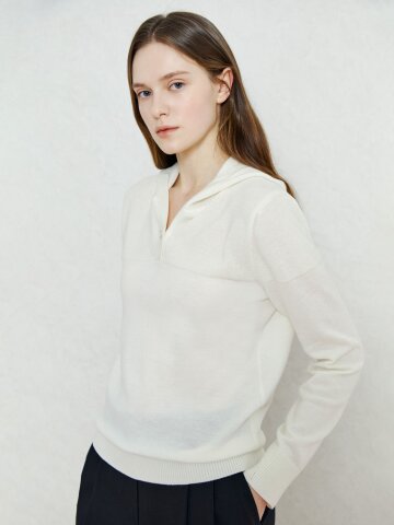 울 클래식 후드 풀오버 니트