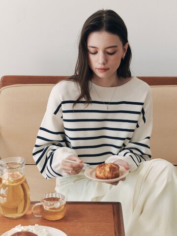 [2TYPE][2컬러] 스트라이프 라운드넥 니트