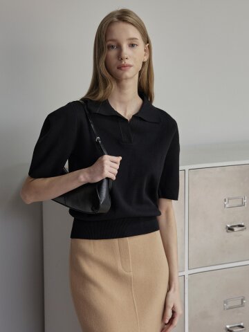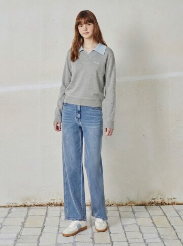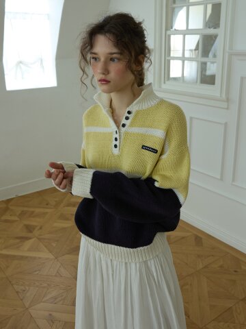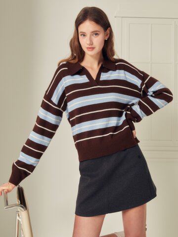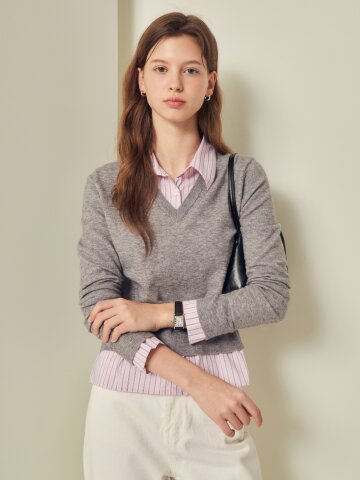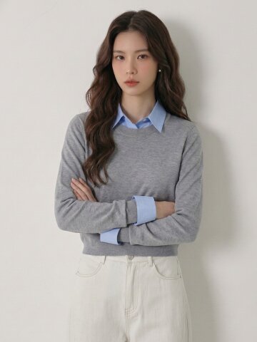 셔츠 배색 크롭 풀오버 니트