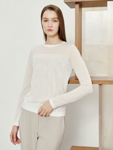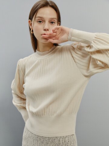 울 시스루 배색 퍼프 풀오버 니트