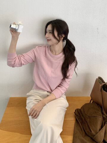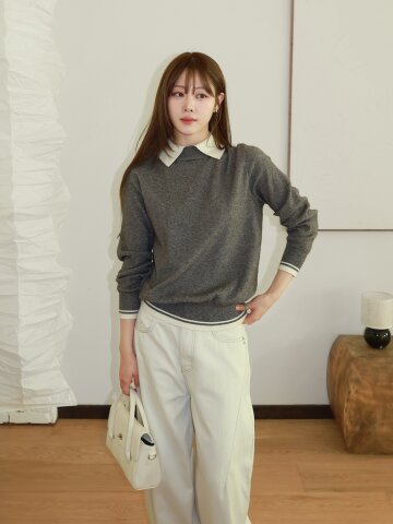 파이핑 라인 턴업 풀오버 니트