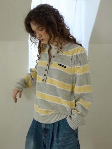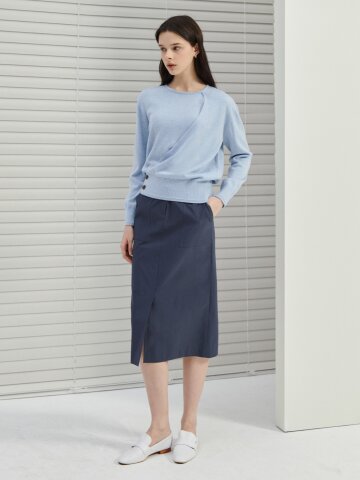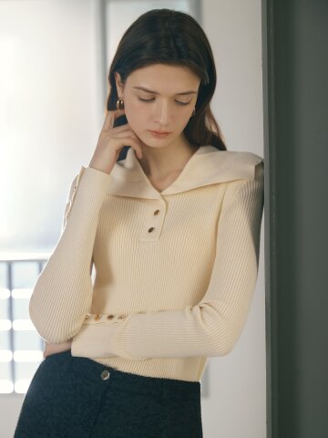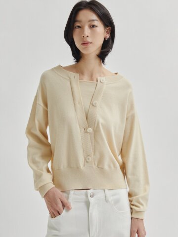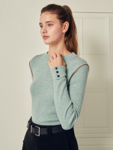 투웨이 버튼 라운드넥 풀오버 니트