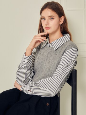 셔츠 배색 케이블 풀오버 니트