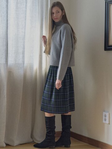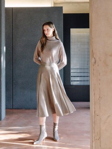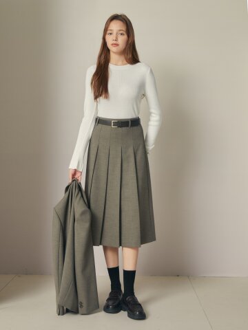 울 백 밴딩 플리츠 스커트