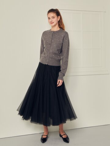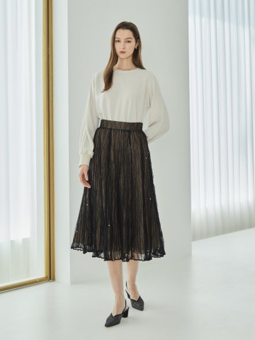 글리터 플리츠 플레어 스커트