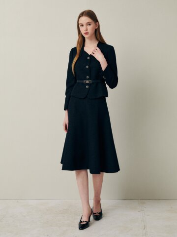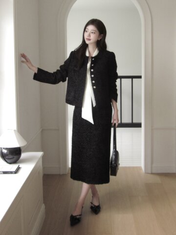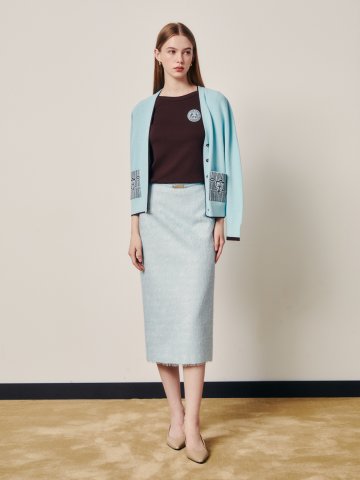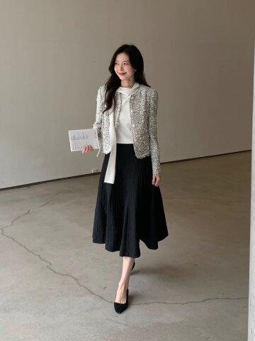 텍스쳐 트위드 H라인 스커트