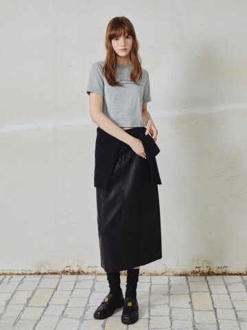 페이크 레더 H라인 스커트