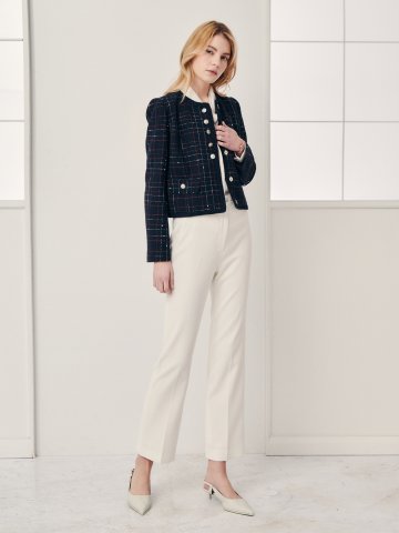 메탈 장식 백 밴딩 부츠컷 팬츠