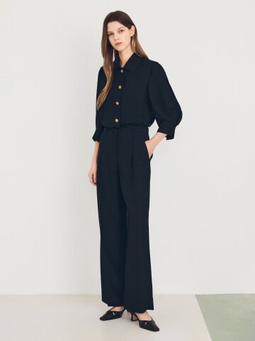 사이드 버튼 와이드 핏 슬랙스 팬츠