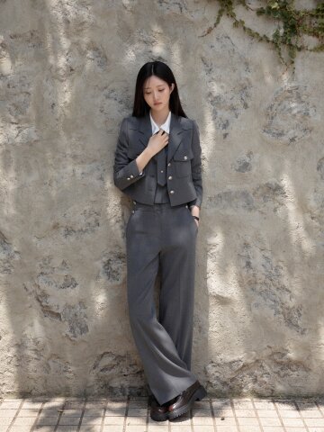 더블 버튼 세미 부츠컷 팬츠