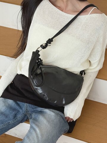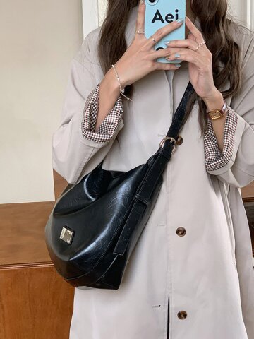포티안 블랙 모던 가죽 캐주얼 호보백 숄더백 M183
