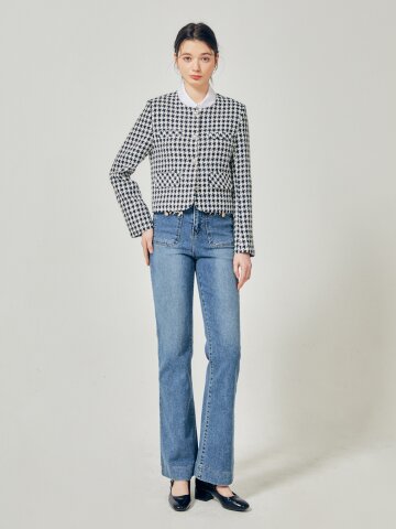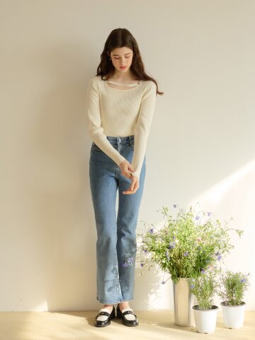 워시드 슬릿 스판 밴딩 데님 팬츠