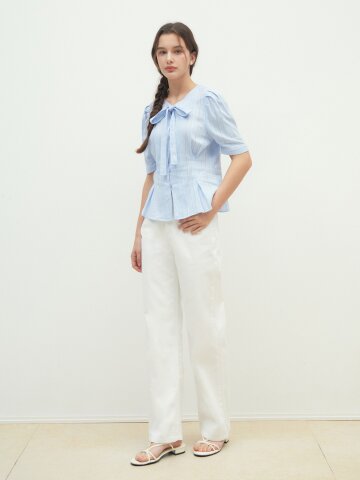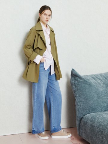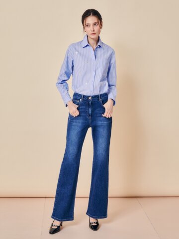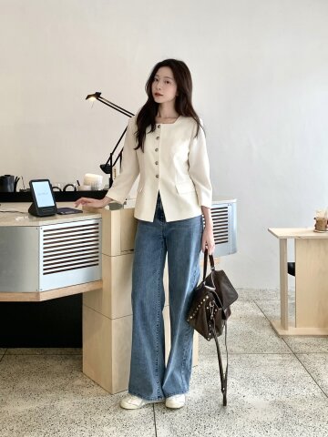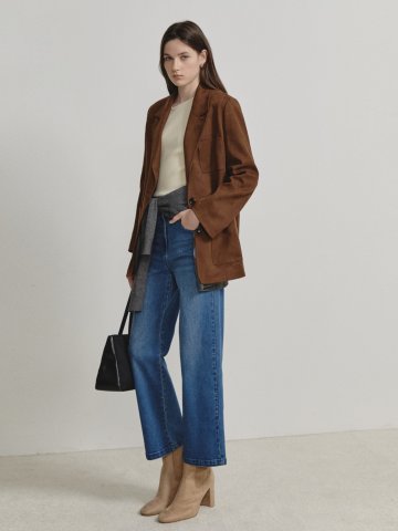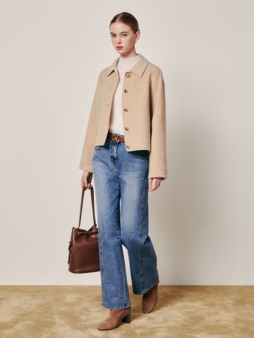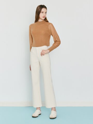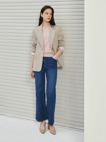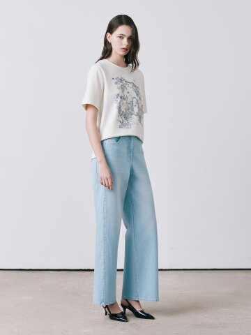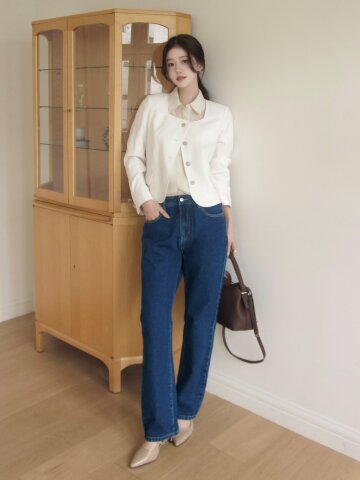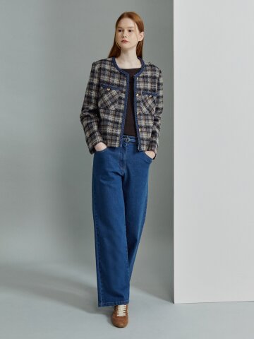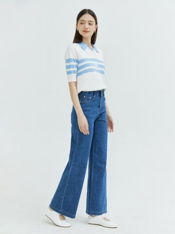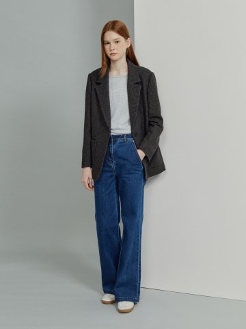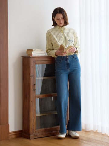 코튼 블렌드 워싱 와이드핏 데님팬츠