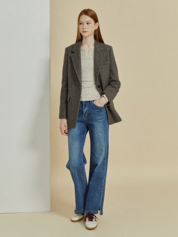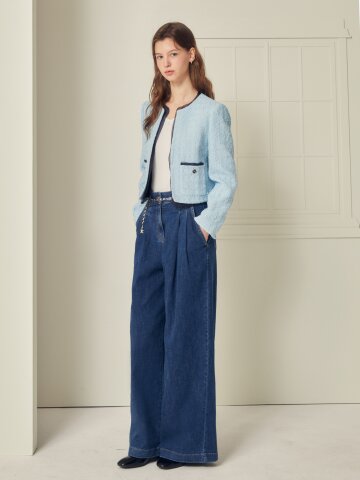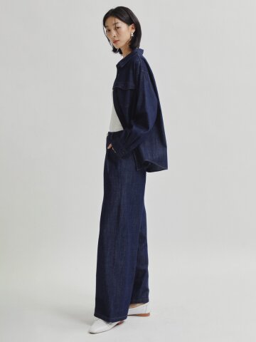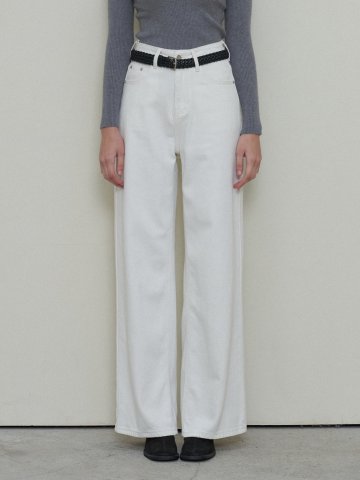 벨티드 포인트 절개 와이드핏 데님팬츠
