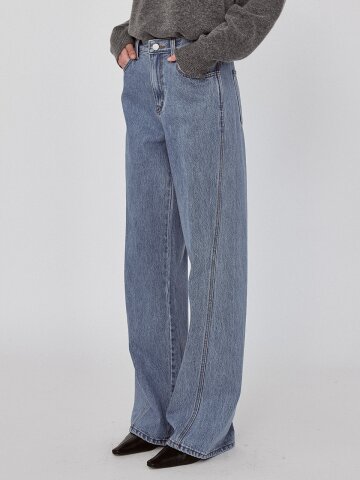 스판 밴딩 스티치 와이드핏 데님 팬츠