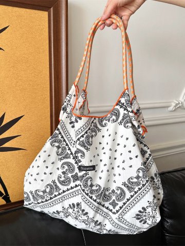 플라워 페이즐리 숄더 에코백 (그레이)