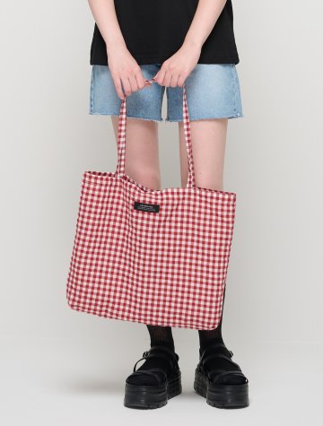 코튼 깅엄체크 숄더백 (레드)