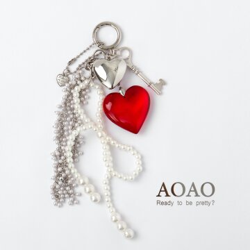 레드 하트 펄 참 키링 RED HEART PEARL CHARM KEYRING
