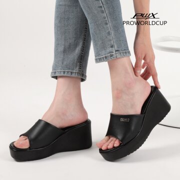 PWX Metro 여성 키높이쿠션 슬리퍼 블랙