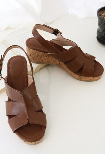 내추럴 천연소가죽 웨지힐샌들 6cm M24M10L