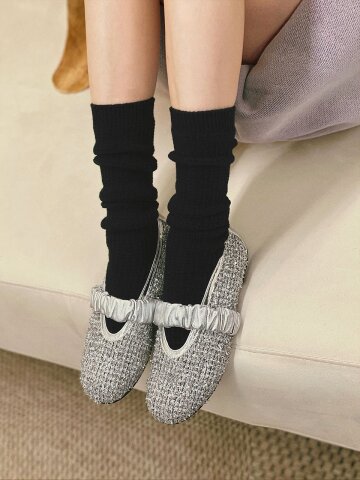 월당 셔링 스트랩 트위드 플랫_실버