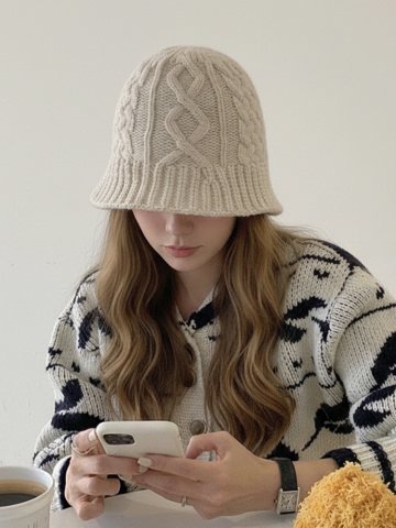 배색 케이블 니트 버킷햇_4color