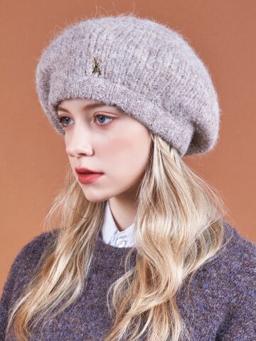 스터드 로고 울 니트 베레모 모카