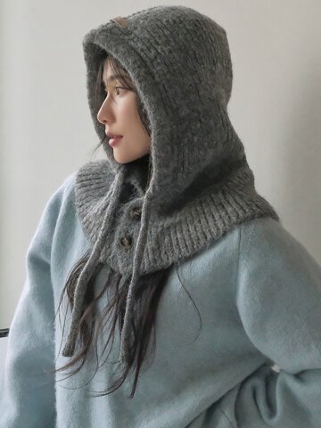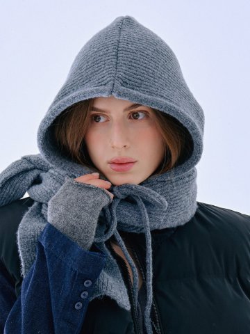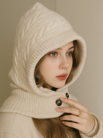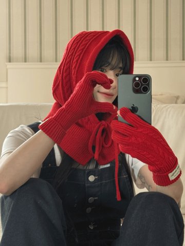 [세트구성] 꽈배기 니트 버튼 바라클라바 장갑 방한 세트 6color