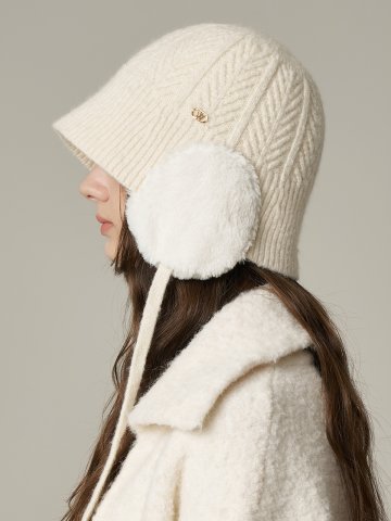 WOMEN 겨울 헤비 니트 꽈배기 비니 [IVORY] 안감 후리스 ver.