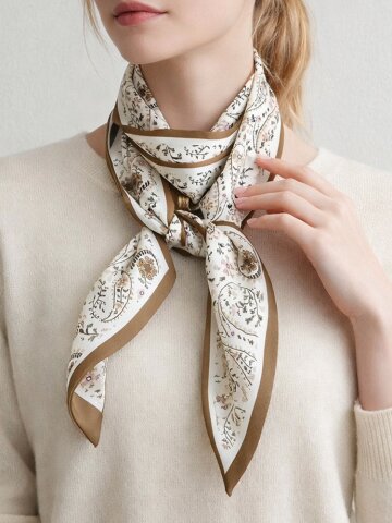 프랑스 화려한 코스모스 꽃무늬 숏스카프