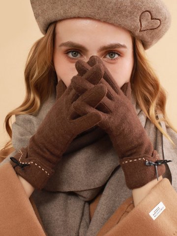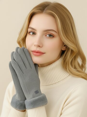 [기프트박스] 설선물 니레 여성 스웨이드 기모 장갑 털 방한장갑