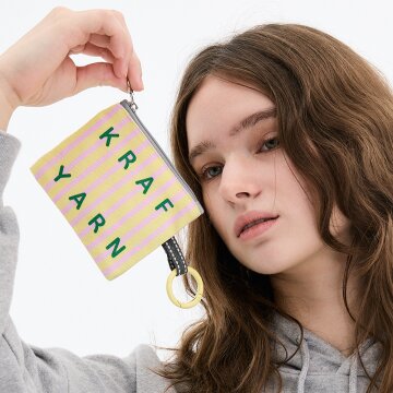 크라프얀 코튼 레터링 미니 파우치 스트라이프 믹스