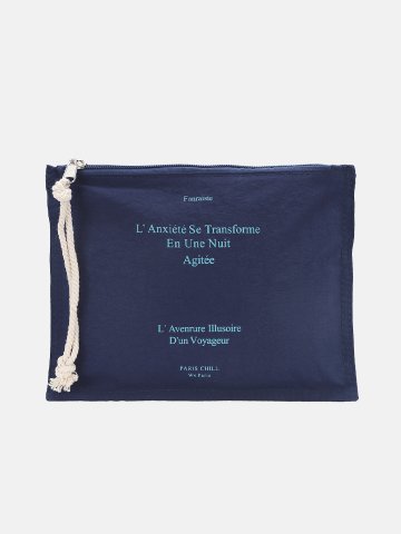 크라프얀 코튼 레터링 미니 파우치 스트라이프 블루