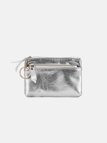 여성 파우치 동전지갑 지퍼 소가죽 실버 키홀더 키링 카드지갑 LJNA028