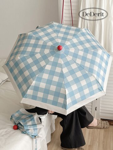 데데리트 여름 장마 귀여운 블루 체크 3단 자동 우산 양산 자외선차단 암막 접이식 휴대용 우양산 양우산 생일 친구 우정 커플 선물