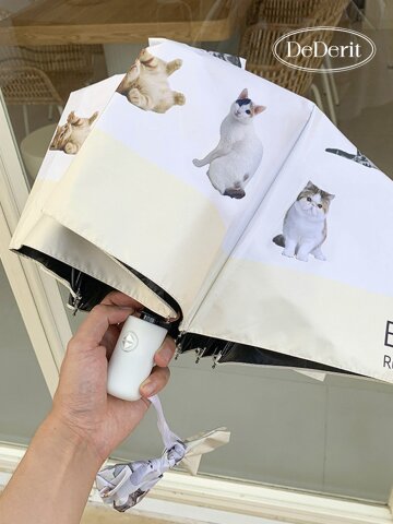 데데리트 예쁜 고양이 3단 자동 튼튼한 암막 우산 자외선차단 양우산