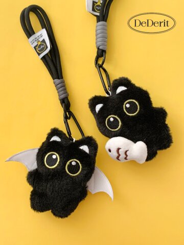 데데리트 귀여운 동물 검정 고양이 물고기 악마 깜냥이 검고 인형 키링 가방 키홀더 열쇠고리 생일 친구 우정 커플 선물