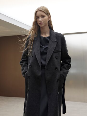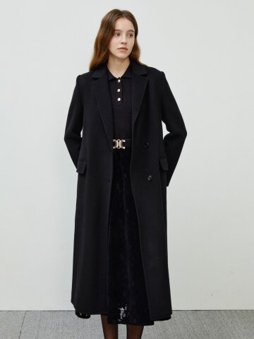 울 캐시미어 블렌드 피크드 라펠 더블 코트