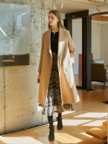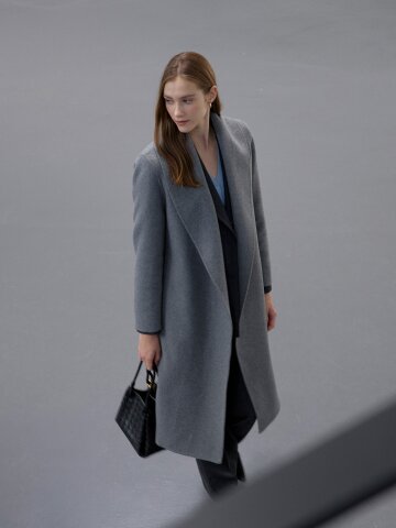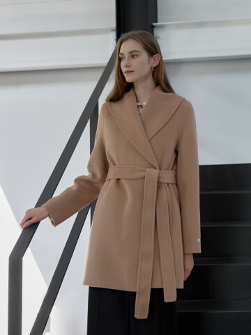 캐시미어 벨티드 숄 칼라 핸드메이드 코트