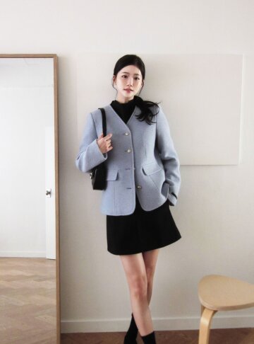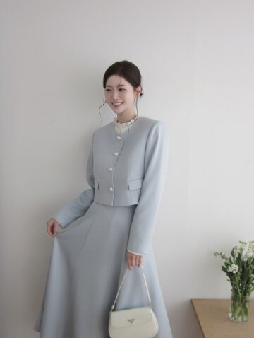 [세트] 소프트 트위드 자켓 & 스커트 / 라이트 블루