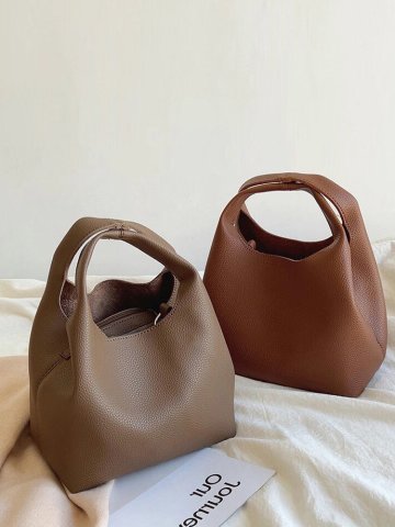 트루아 소프트 가죽 손잡이 똑딱이 토트 크로스백 버킷백
