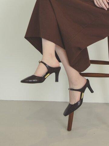 [바바단독] 베리 스틸레토 투톤 브로치 슬링백힐 6cm