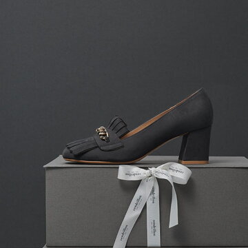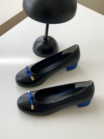 아나스 둥근코 투톤 리본 미들 펌프스 3cm